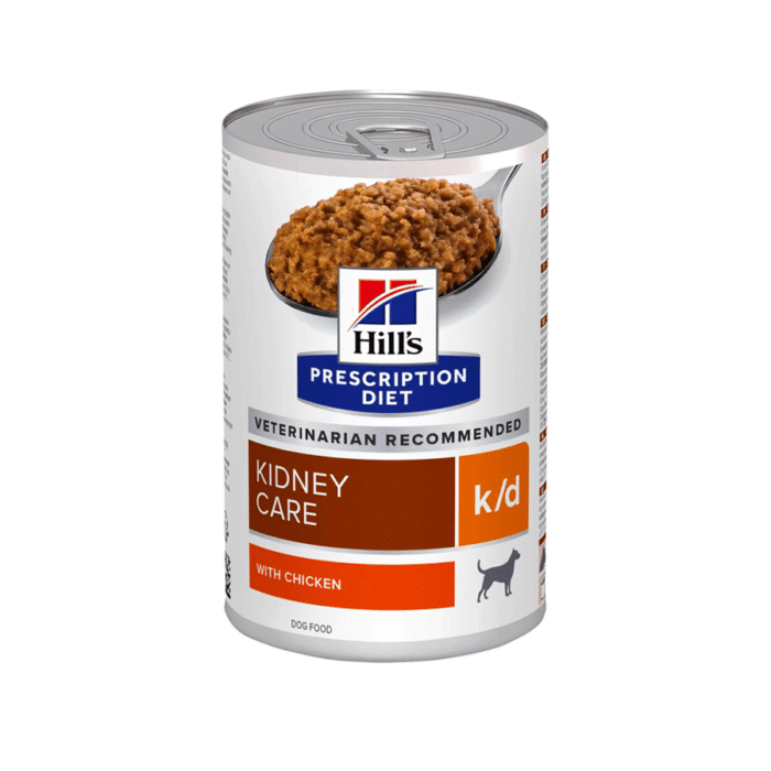Hills PD Canine k/d 13 oz (369g) es un alimento para perros con falla renal (azotemia), enfermedad cardíaca de leve a moderada.