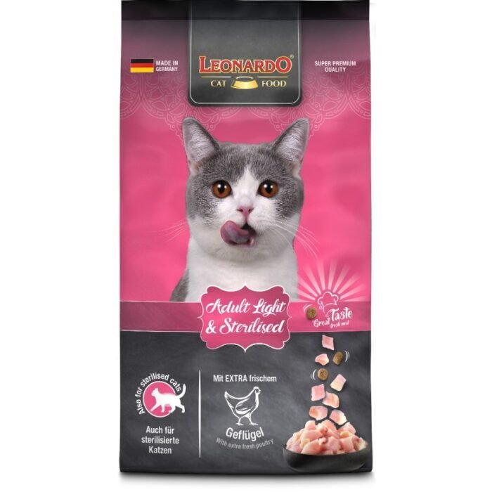 Gracias a esta composición, Leonardo Adult Light ofrece una dieta completa, saludable y adaptada a las necesidades de los felinos menos activos.