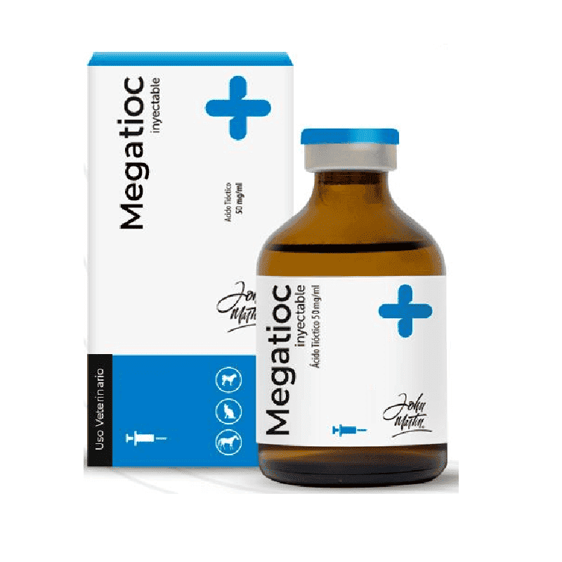 Megatioc es una solución inyectable utilizada en medicina veterinaria como apoyo terapéutico en el manejo de enfermedades hepáticas y trastornos metabólicos asociados al hígado y al sistema renal. La formulación contiene ácido tióctico, un compuesto reconocido por su acción como coenzima en procesos metabólicos celulares, lo que contribuye al funcionamiento adecuado del organismo.