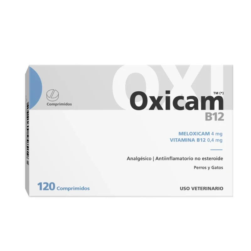 Oxicam B12 es un medicamento veterinario en comprimidos diseñado para el manejo del dolor y la inflamación en perros y gatos. Su formulación combina meloxicam, un antiinflamatorio no esteroide ampliamente utilizado en medicina veterinaria, con vitamina B12, un nutriente esencial que participa en diversas funciones metabólicas del organismo.